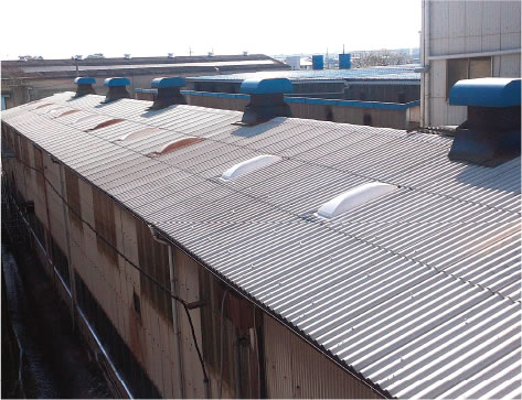 工場や倉庫、店舗、畜舎などのスレート屋根、壁材として、激しい風雨や厳しい日照りに耐え、